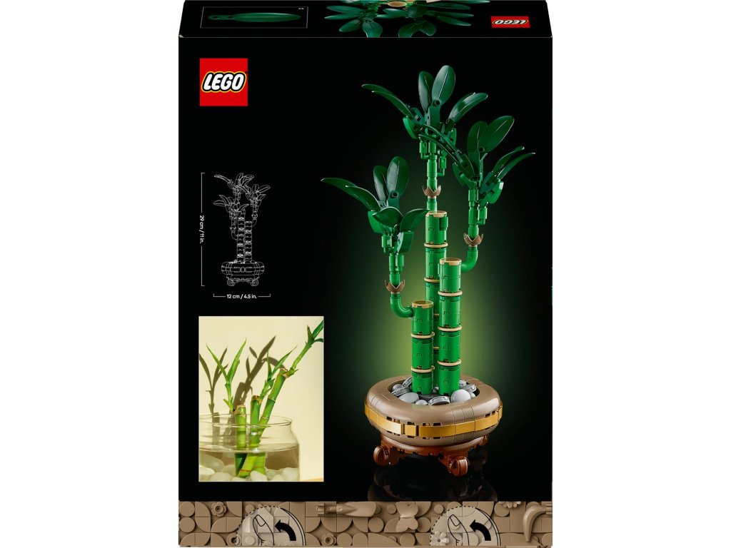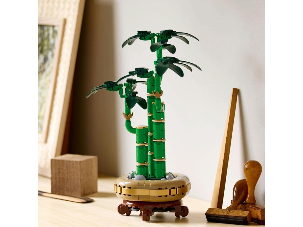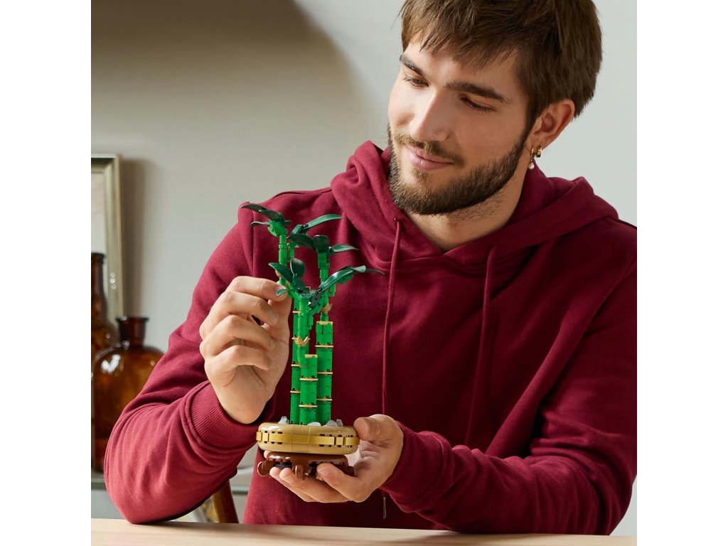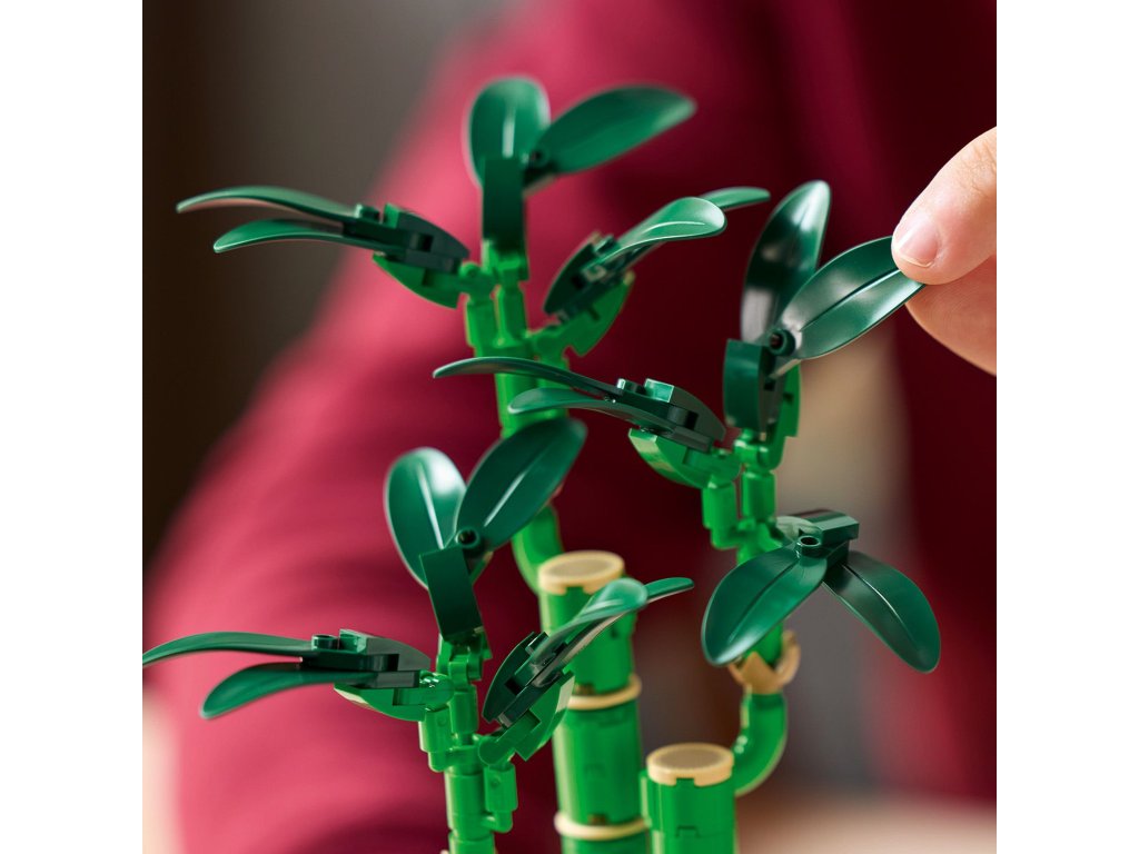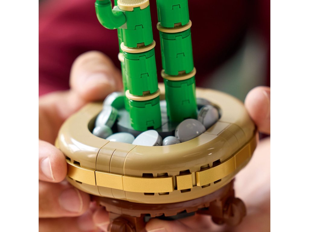 LEGO® uplatňuje udržitelný přístup – některé dílky v této stavebnici jsou vyrobeny z plastu na rostlinné bázi. Model nevyžaduje péči, takže si můžete užívat stálou krásu bambusu bez zalévání.