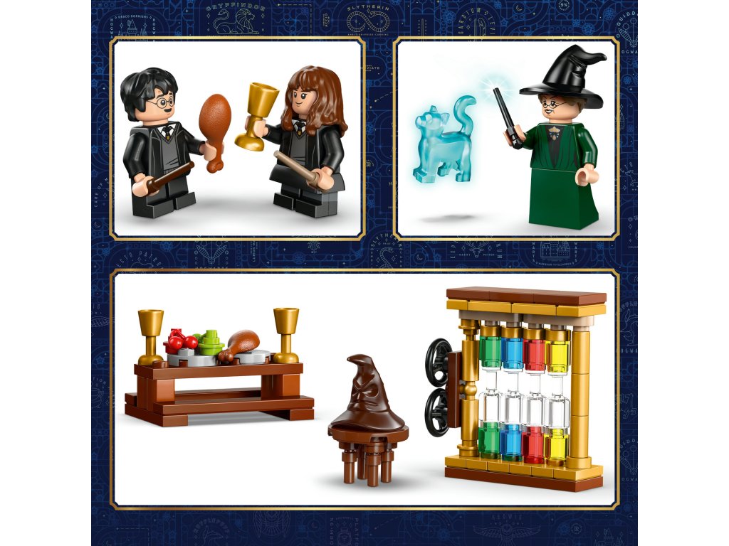LEGO® 76460 nabízí hodiny kouzelnické zábavy pro malé fanoušky Harryho Pottera. Děti si mohou simulovat slavnostní scény, vytvářet vlastní příběhy a rozvíjet kreativitu i strategické myšlení. Set kombinuje autentické herní prvky s detailním modelem hradu a kouzelnickými scénami.