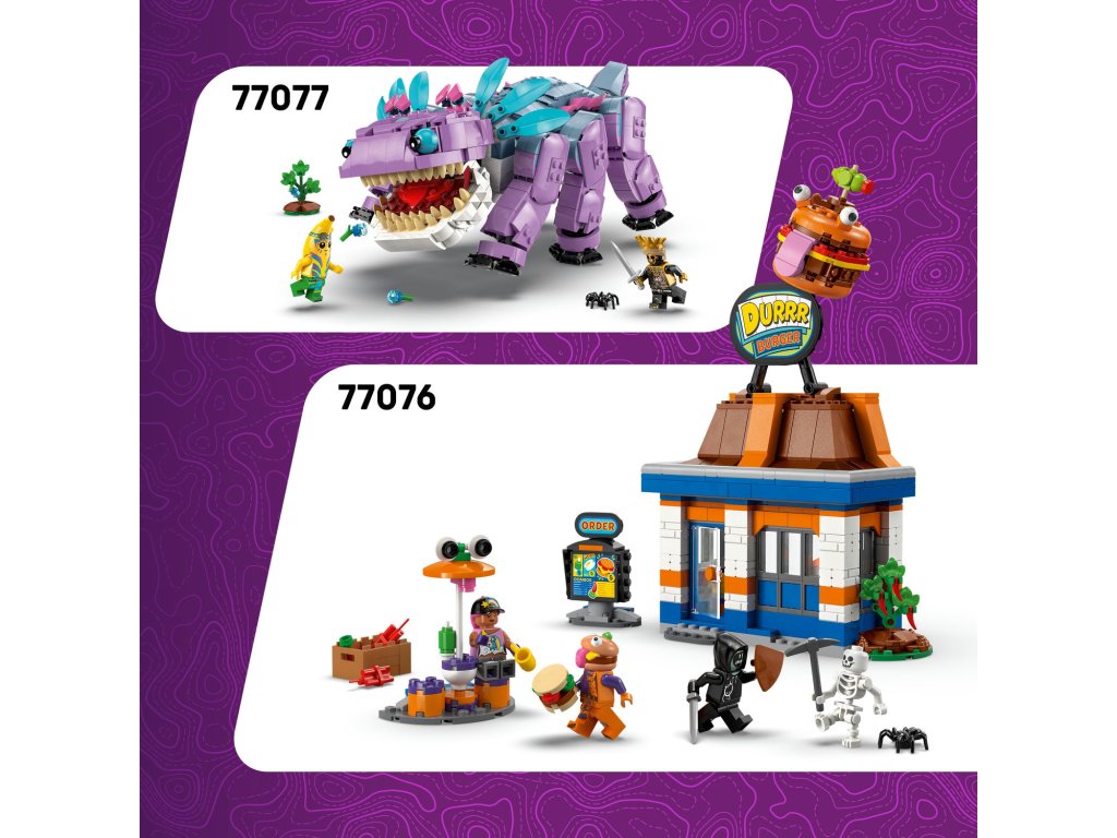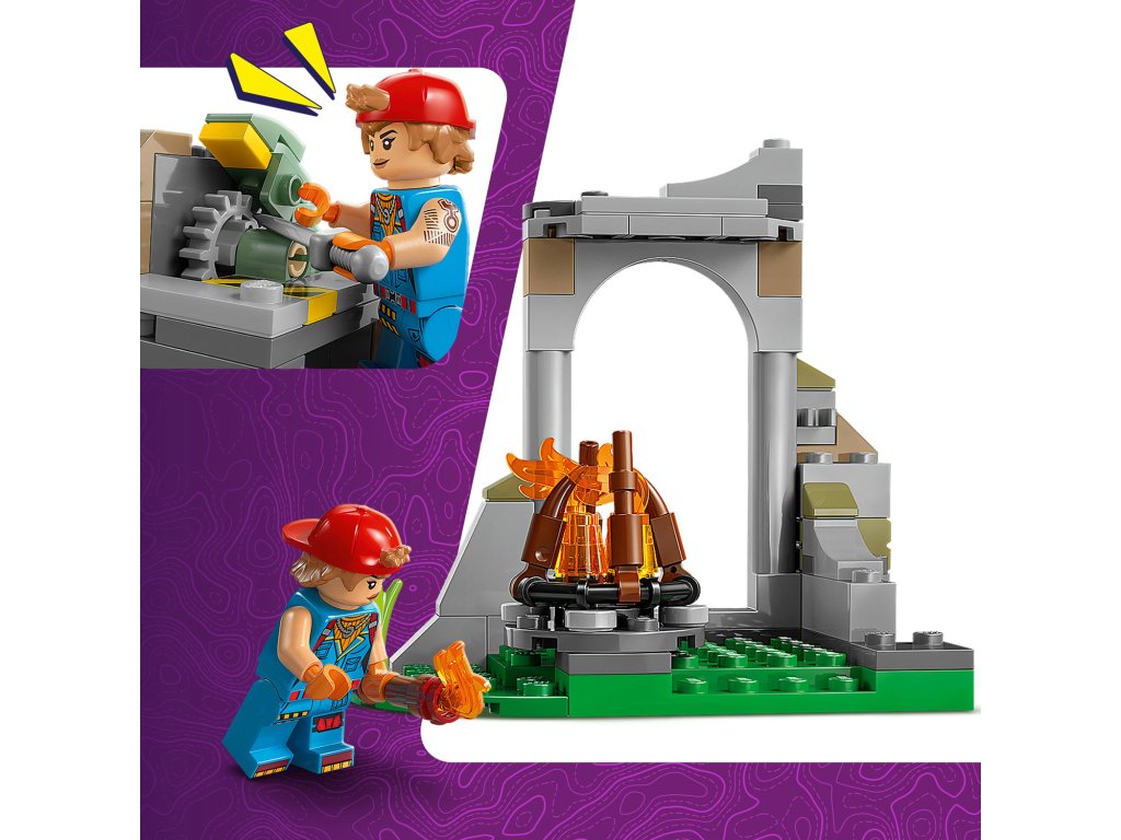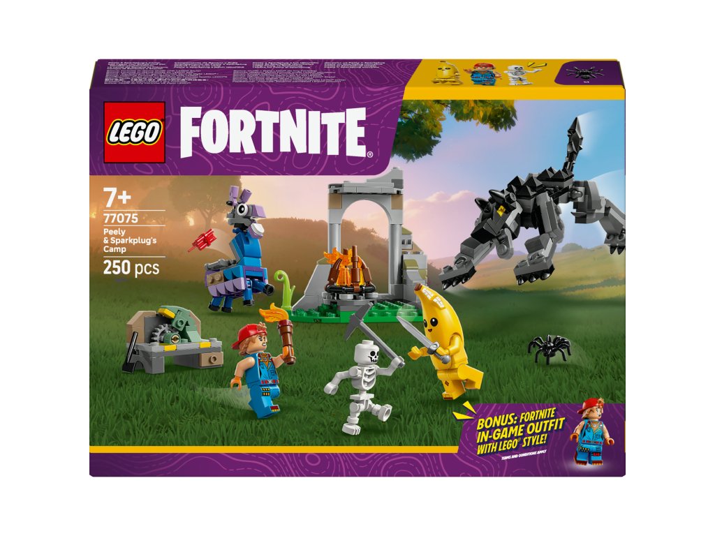 Peely a Sparkplug a jejich tábořiště 77075 umožňuje dětem sestavit kompletní tábořiště s figurkami Peelyho a Sparkpluga, stanem a doplňky. Sada podporuje fantazii, kreativitu a jemnou motoriku a nabízí možnost vytvářet vlastní interaktivní příběhy plné dobrodružství a zábavy v přírodě.