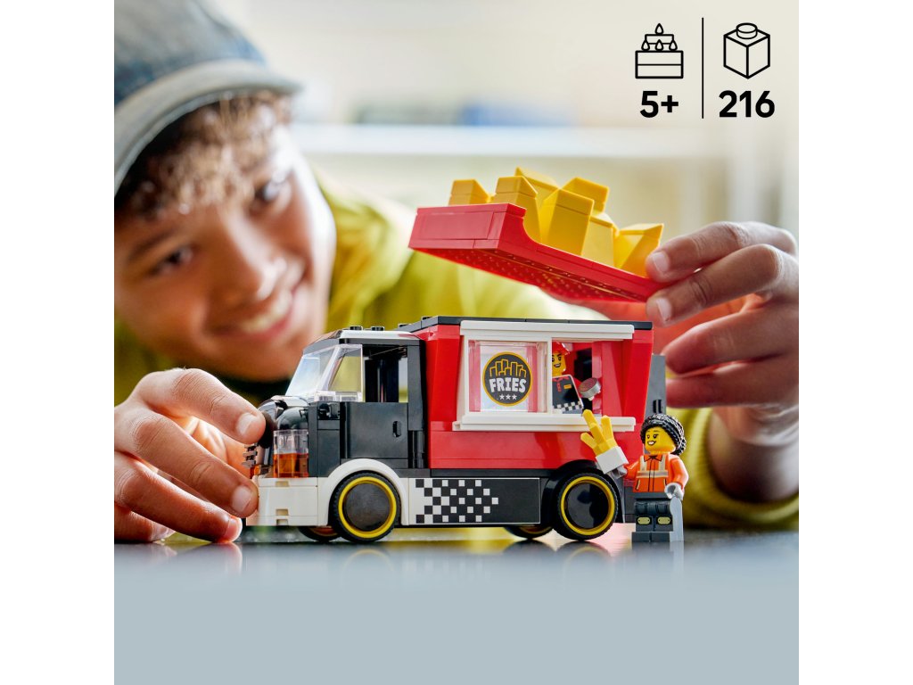 Vyberte si LEGO City – Pojízdné občerstvení s hranolky 60488 a dopřejte dětem zábavu, která kombinuje kreativní stavění, realistický design a městské scénky. Perfektní volba pro malé fanoušky LEGO City a gastronomických vozidel.