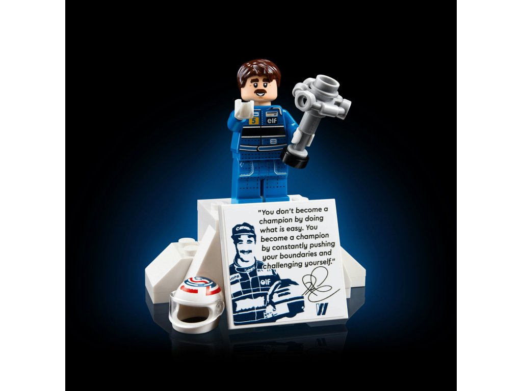 Sada obsahuje detailní minifigurku Nigela Mansella v závodním obleku s helmou, který podtrhuje autenticitu této kolekce. Figurku lze snadno umístit do kokpitu vozu pro interaktivní hraní nebo vystavení.
