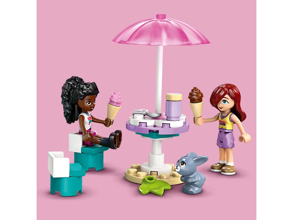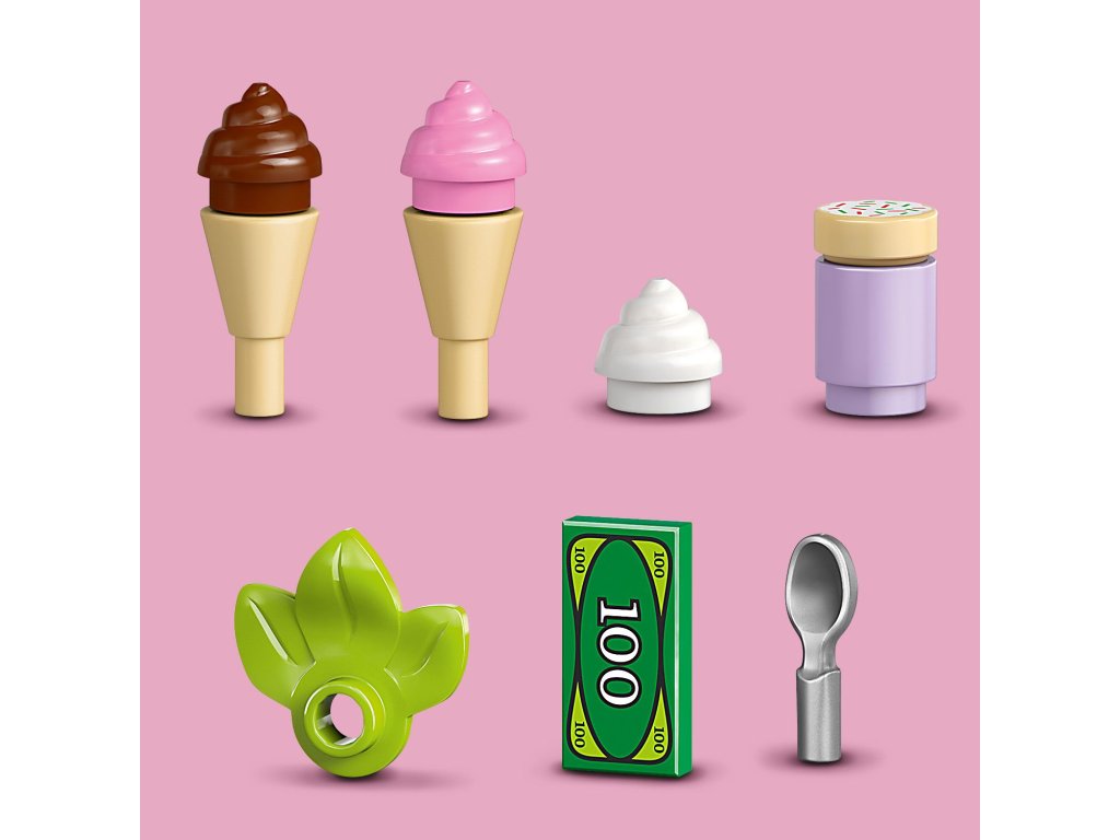 - Figurky a doplňky: Součástí jsou figurky postaviček z městečka Heartlake a různé druhy zmrzlin pro rozmanité herní scénáře.